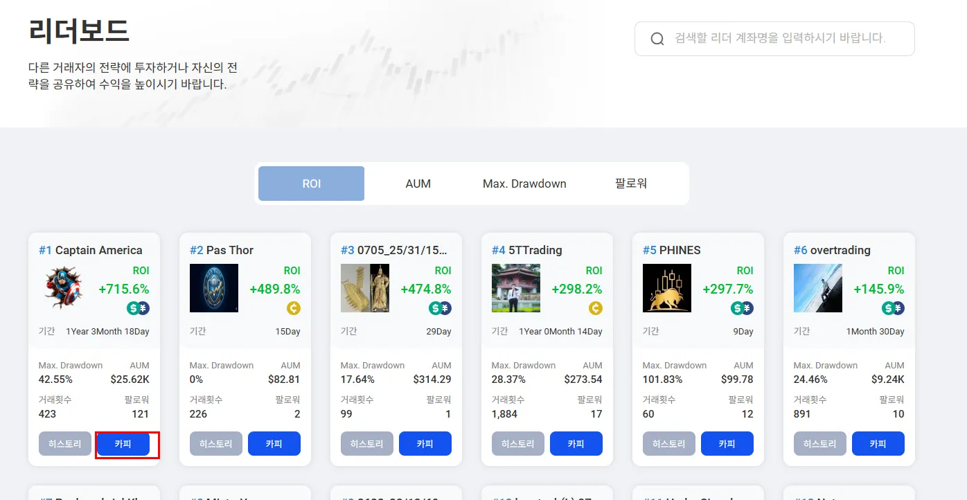 3)리더보드에서 원하는 리더를 선택하여 “카피”