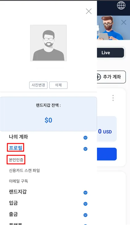 프로필을 선택하여 ‘본인 인증’ 메뉴를 선택하세요.